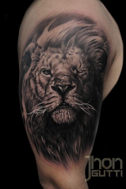 Jhon Gutti Tattoos Black And Gray Lion With Scar