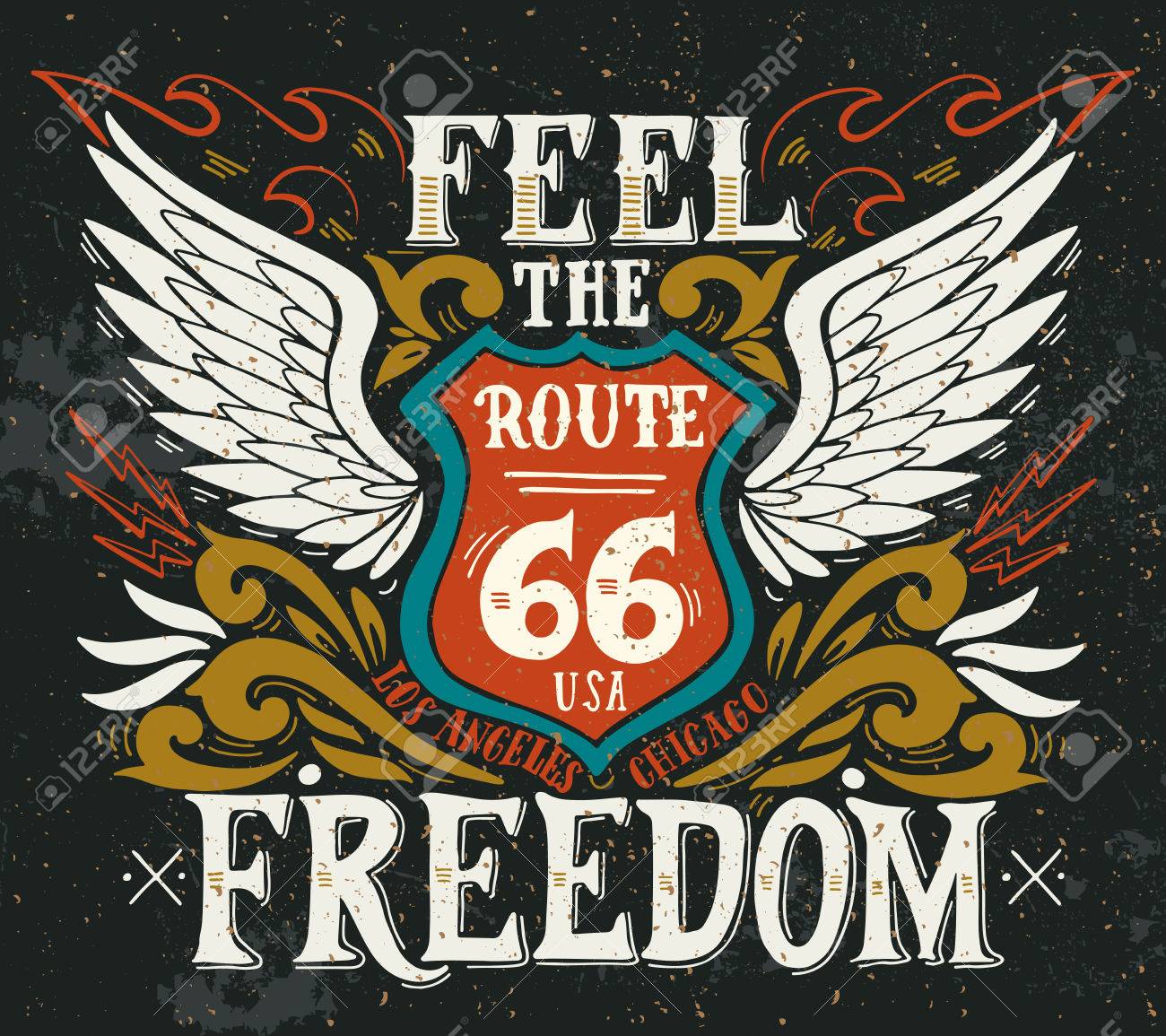 Sentir La Liberte Route 66 Hand Drawn Grunge Illustration Vintage Avec Lettrage A La Main Clip Art Libres De Droits Vecteurs Et Illustration Image 66650885