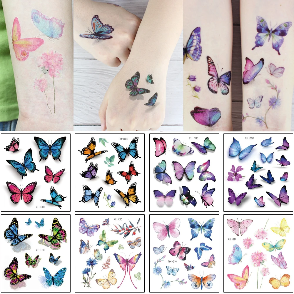 Tatuaje De Brazo 3d Para Mujer Y Nina Calcomania Temporal De Flores Y Mariposa Voladora Colorida Cuerpo Impermeable Cuello Muneca Tatuaje Artistico Tatuajes Temporales Aliexpress