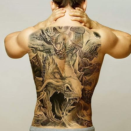Tatuajes Adhesivos Temporales De Espalda Completa Para Mujer Tatuaje Grande Impermeable Con Diseno De Dragon Tigre Y Serpiente Para Cuerpo De Color Tatuajes Temporales Aliexpress